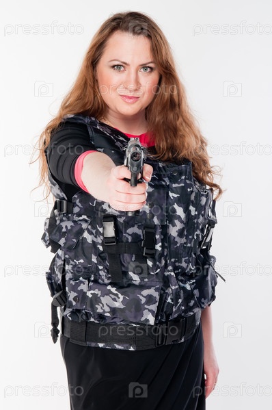 Молодая и красивая женщина с пистолетом