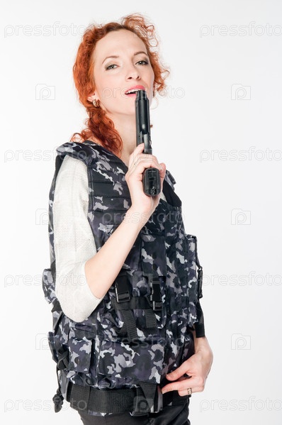 Молодая и красивая женщина с пистолетом