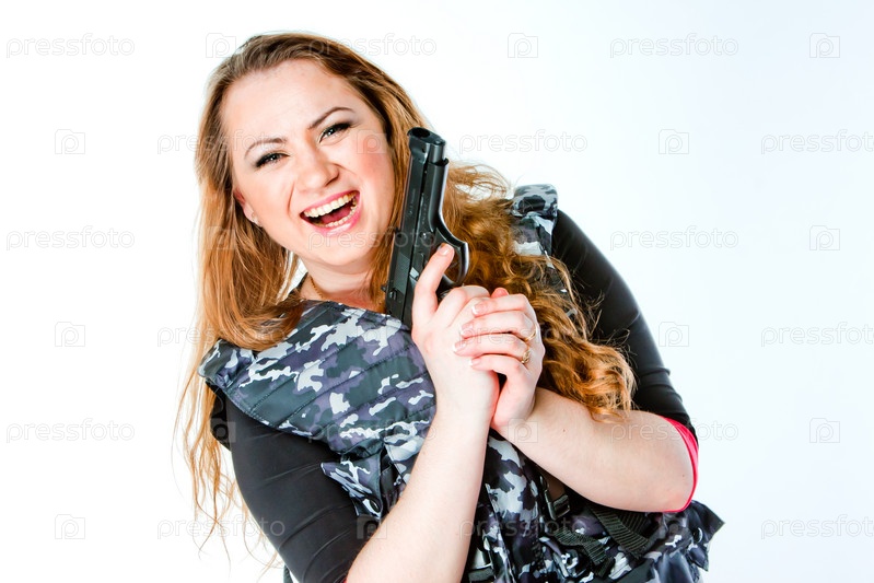 Молодая и красивая женщина с пистолетом