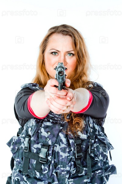 Молодая и красивая женщина с пистолетом