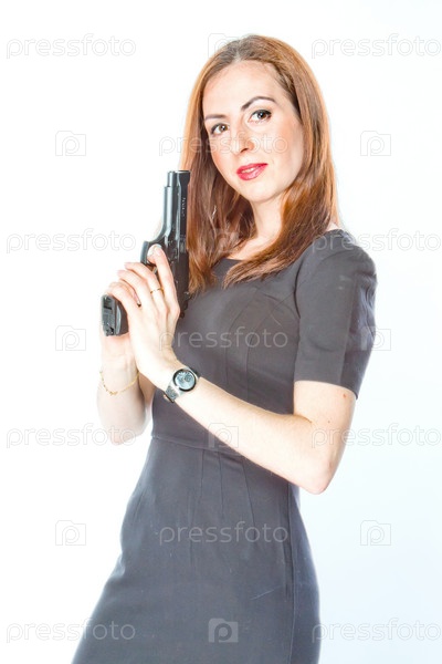 Молодая и красивая женщина с пистолетом