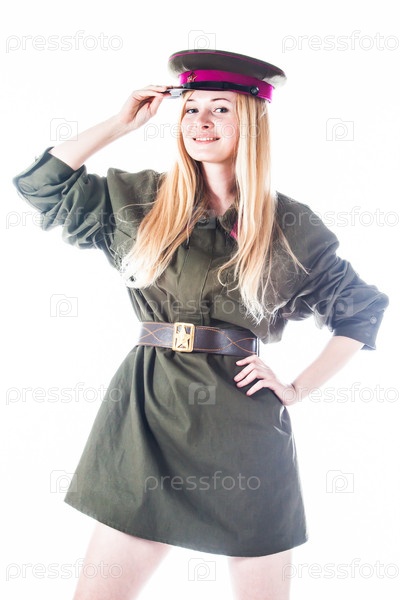 Молодая и красивая женщина в красноармейской форме