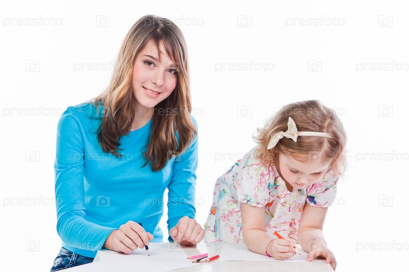 Две красивые девочки рисуют