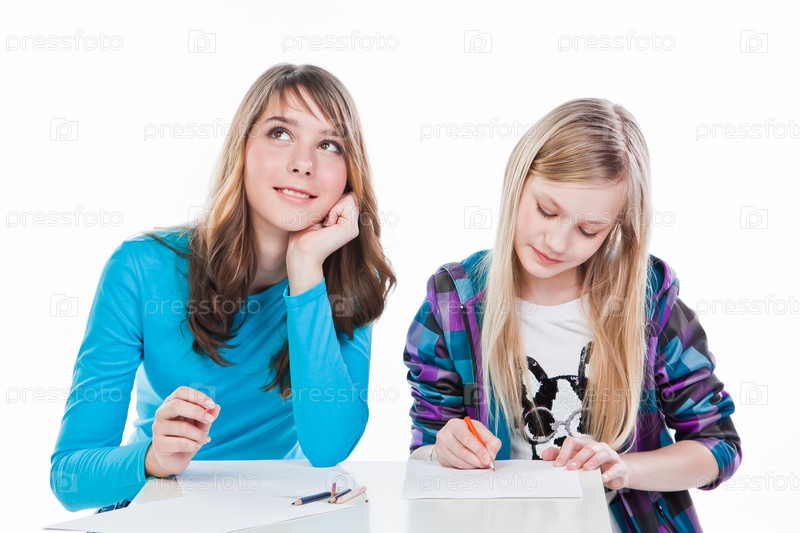 Две красивые девочки рисуют