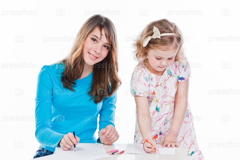 Две красивые девочки рисуют