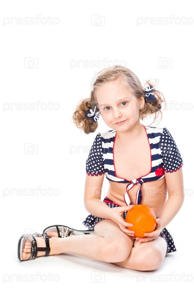Красивая девочка с апельсином