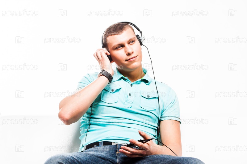 Молодой мужчина слушает музыку в наушниках