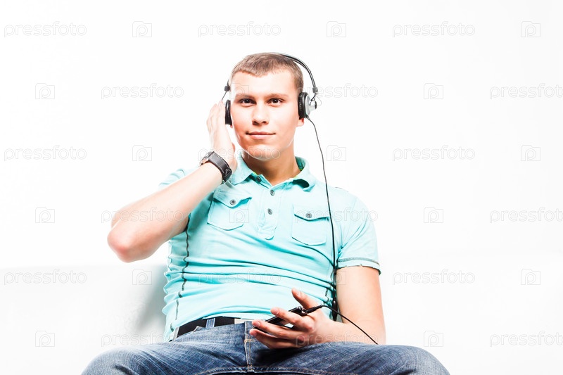 Молодой мужчина слушает музыку в наушниках