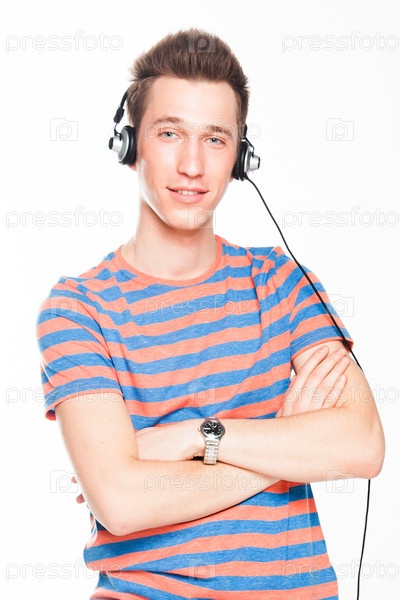 Молодой мужчина слушает музыку в наушниках