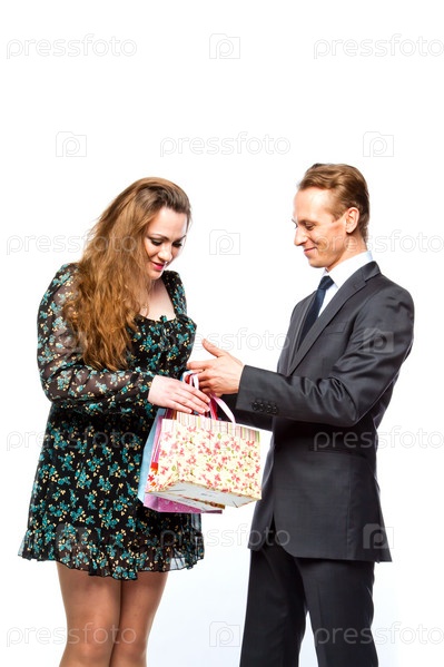 Мужчина дарит подарок красивой женщине