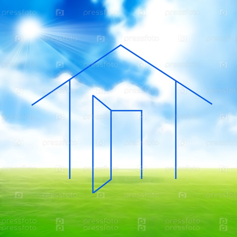 Каркас дома на зеленом лугу