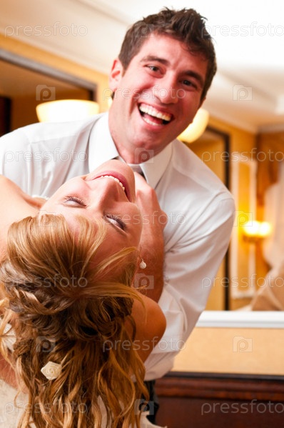 Пара молодоженов вместе развлекается