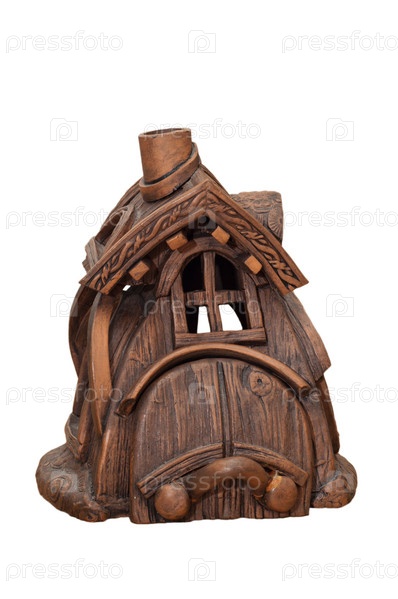 Декоративный домик из глины на белом фоне