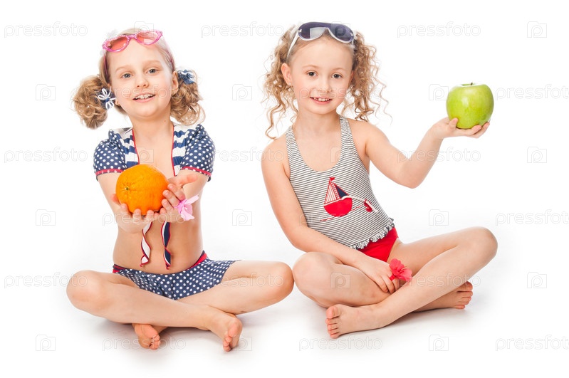 Две красивые девочки в купальных костюмах