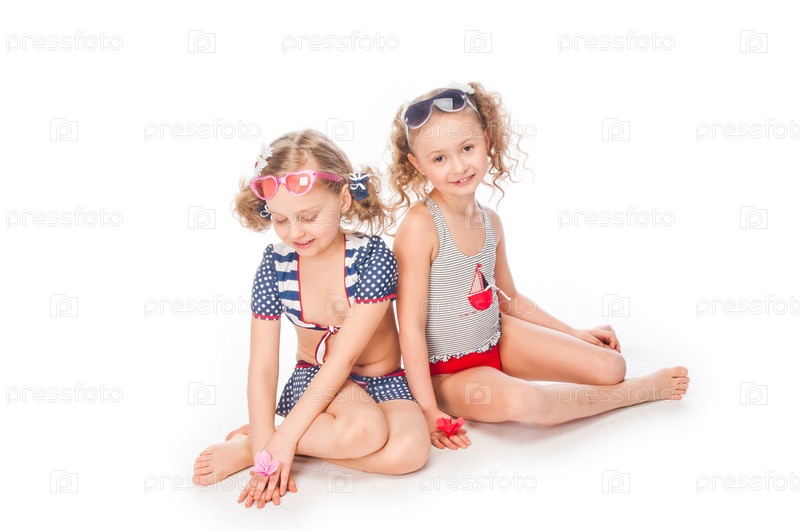 Две красивые девочки в купальных костюмах