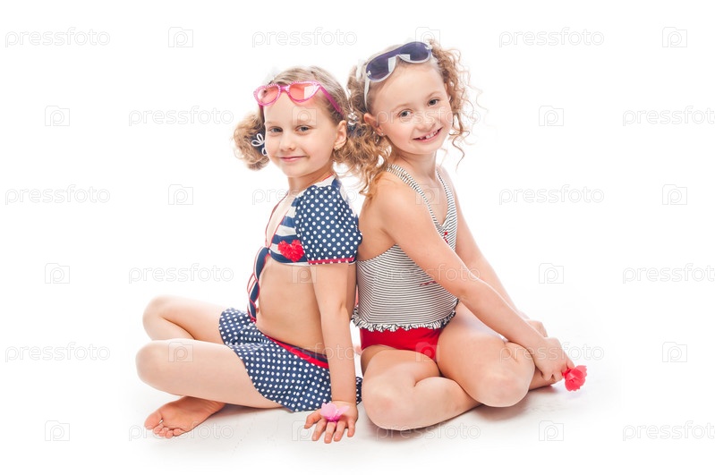 Две красивые девочки в купальных костюмах