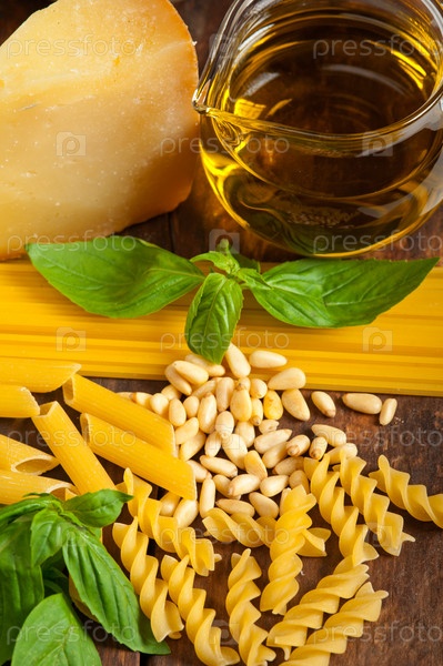 Ингредиенты для итальянских макарон с песто из базилика