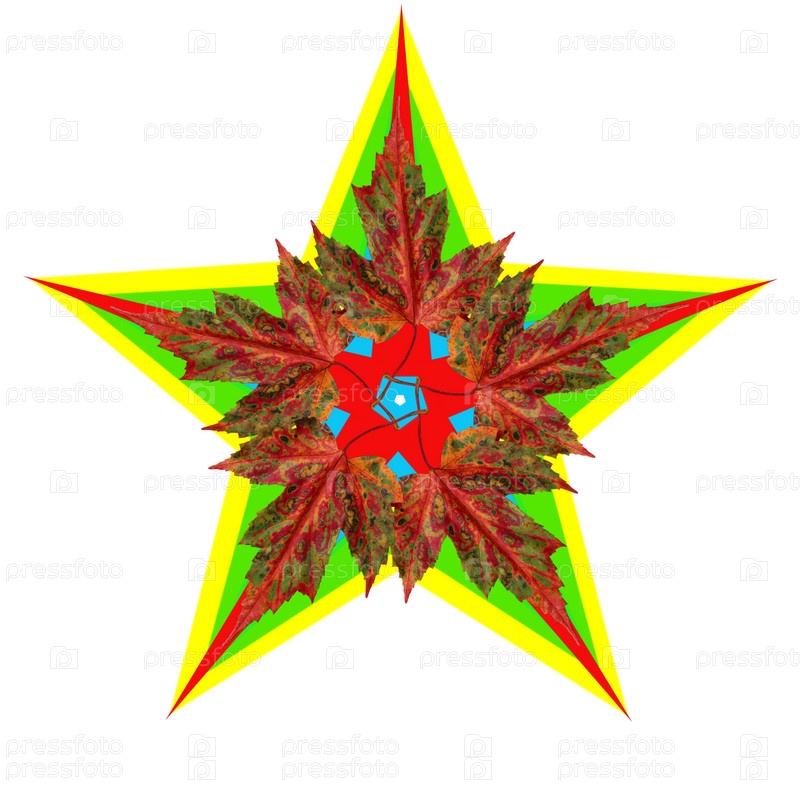 Звезда с осенними листьями на белом фоне