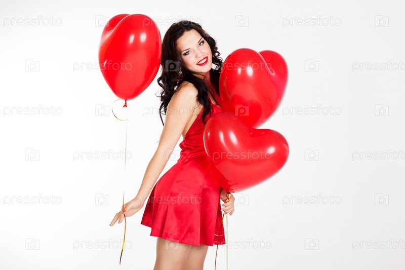 Красивая девушка в красном платье на День Св. Валентина