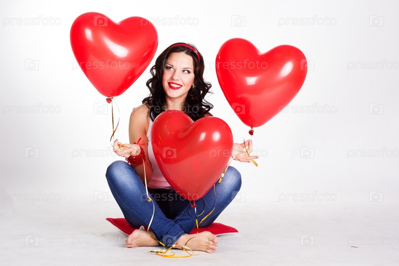 Красивая молодая женщина с красными шариками