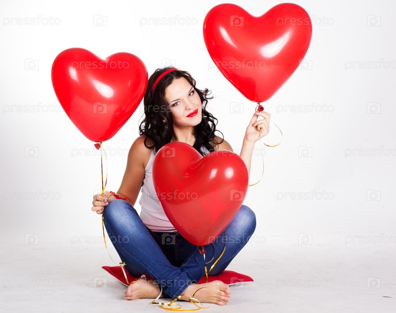 Красивая молодая женщина с красными шариками