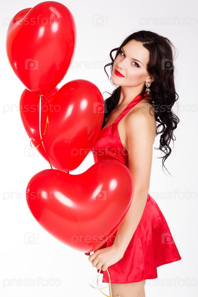 Красивая молодая женщина в красном платье