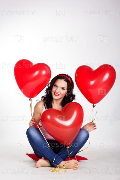 Красивая молодая женщина с красными шариками