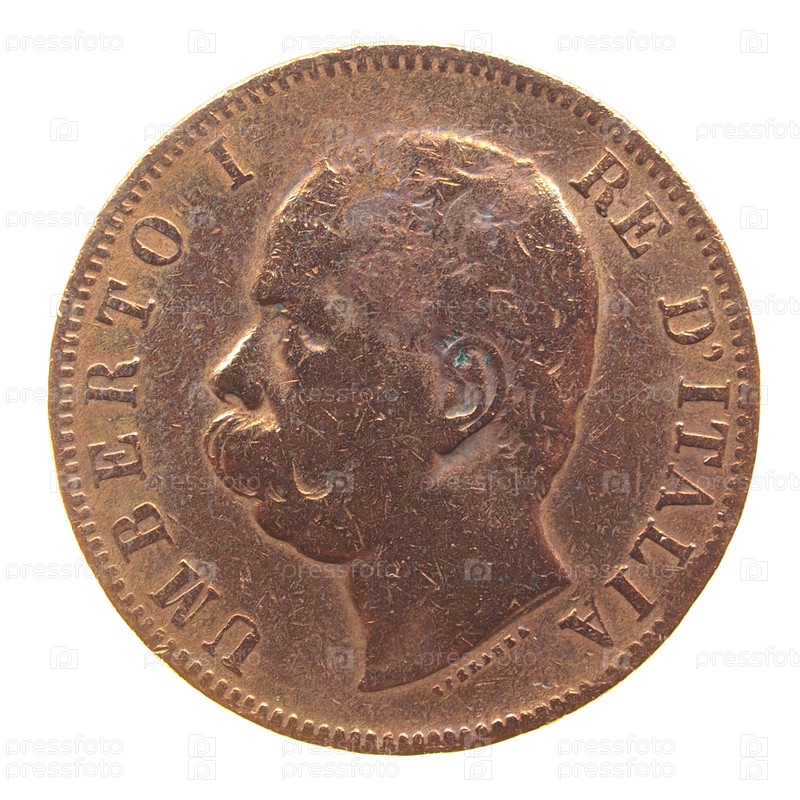 Древняя итальянская монета, изолированная на белом фоне