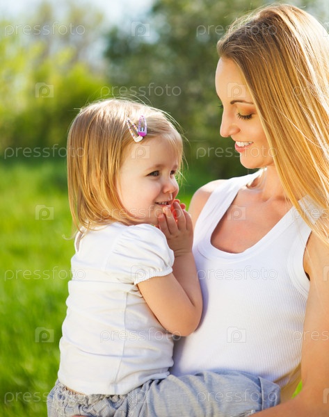Счастливая мать и ее маленькая дочь весной