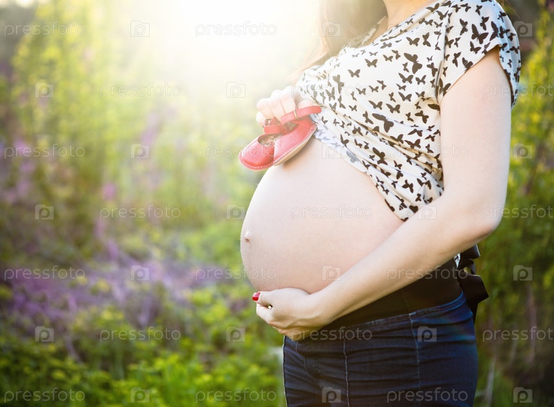 Беременная женщина с детской обувью