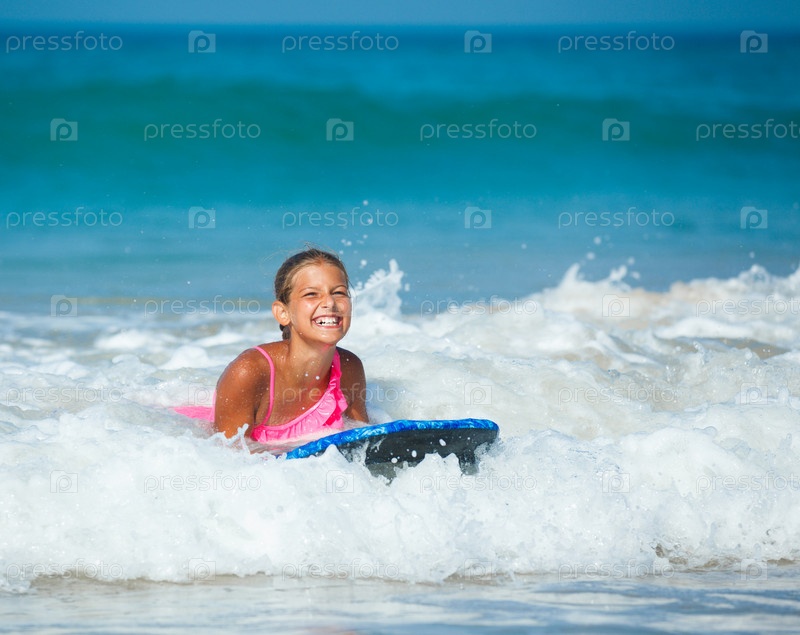 Девочка занимается серфингом на летних каникулах
