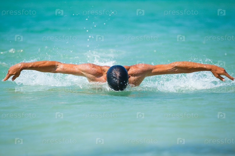 Мужчина плавает в океане