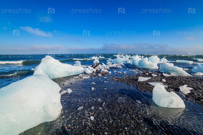 Ледяные глыбы на песчаном пляже