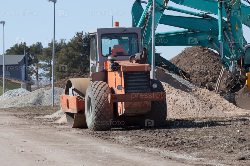Экскаваторы и каток