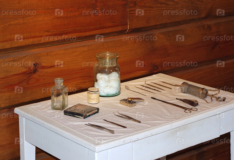 Стол в музее со старыми медицинскими инструментами
