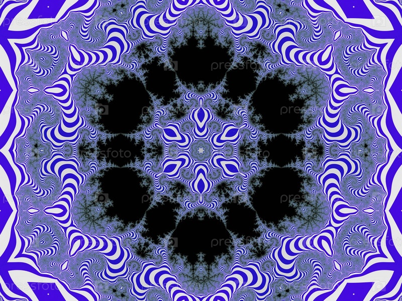 Фрактальный орнамент с абстрактной снежинкой в синих тонах