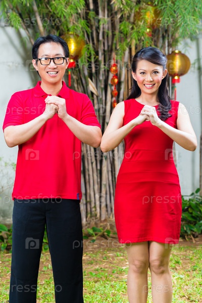 Пара празднуют китайский Новый год