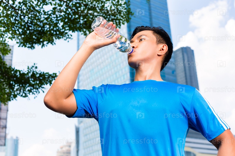 Мужчина занимается фитнесом в азиатском городе