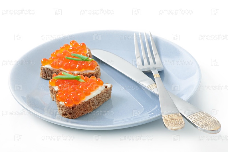 Бутерброд с красной икрой в форме сердца