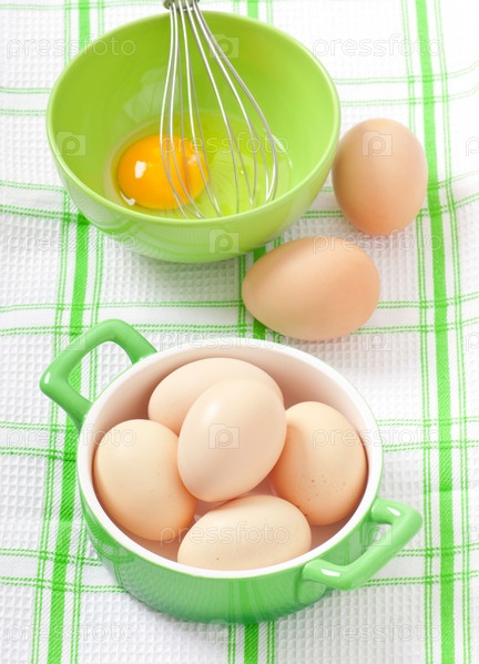 Сырые яйца в кастрюле