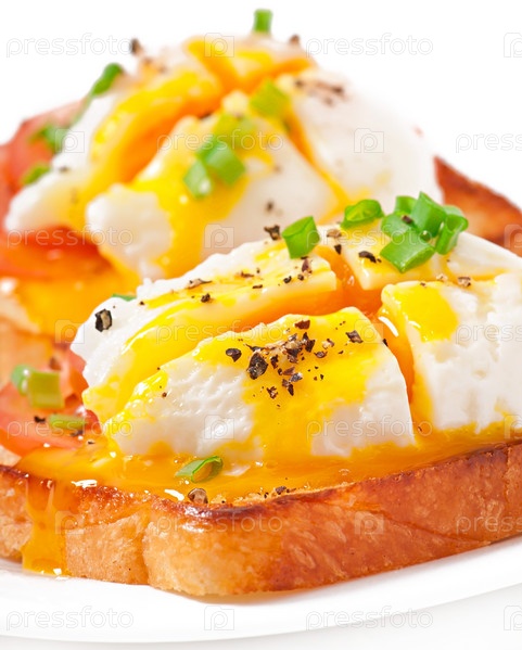 Вареные яйца на тосте с помидорами и перцем