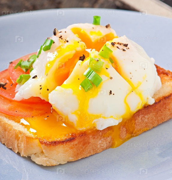 Вареные яйца на тосте с помидорами и перцем