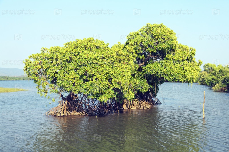 Зеленые мангровые деревья в озере