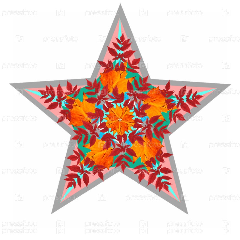 Звезда с осенними листьями на белом фоне