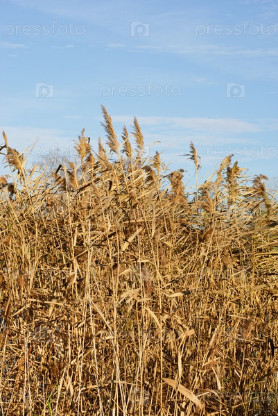 Сухой камыш под голубым небом