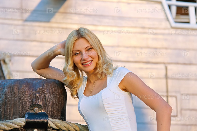 Девушка на фоне пиратского корабля