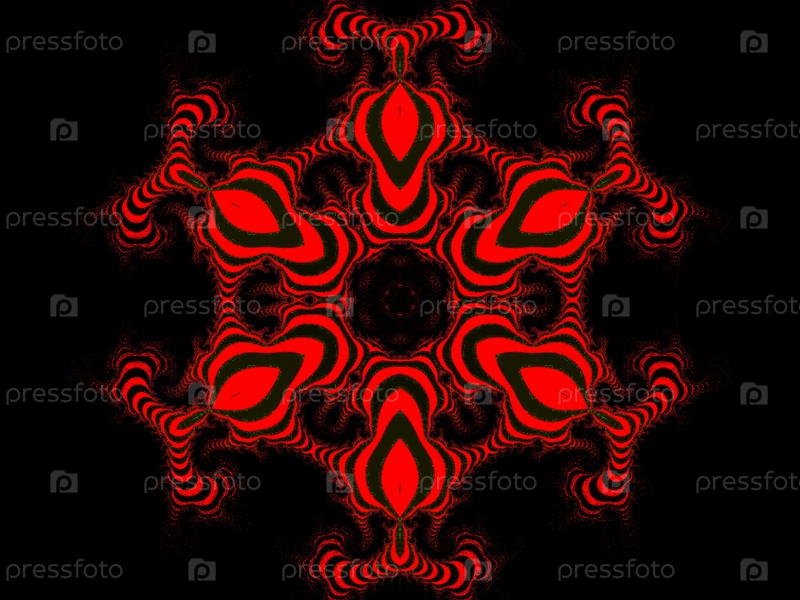 Декоративный фрактальный орнамент с полосками в красно-черных тонах