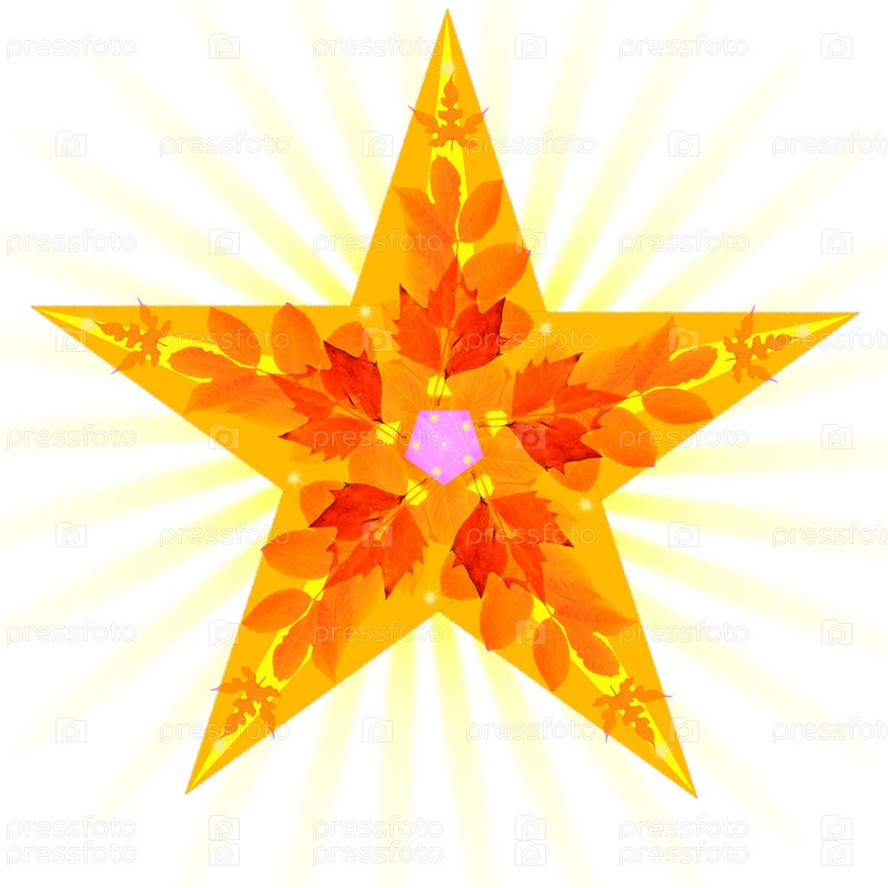 Осенняя звезда с лучами на белом фоне
