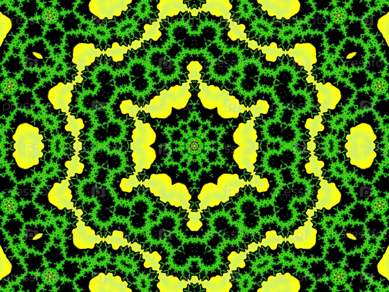 Яркий фрактальный орнамент в желто - зеленых тонах