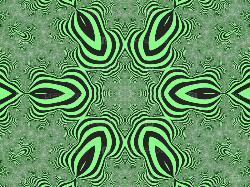 Декоративный фрактальный орнамент в полоску в зеленых тонах